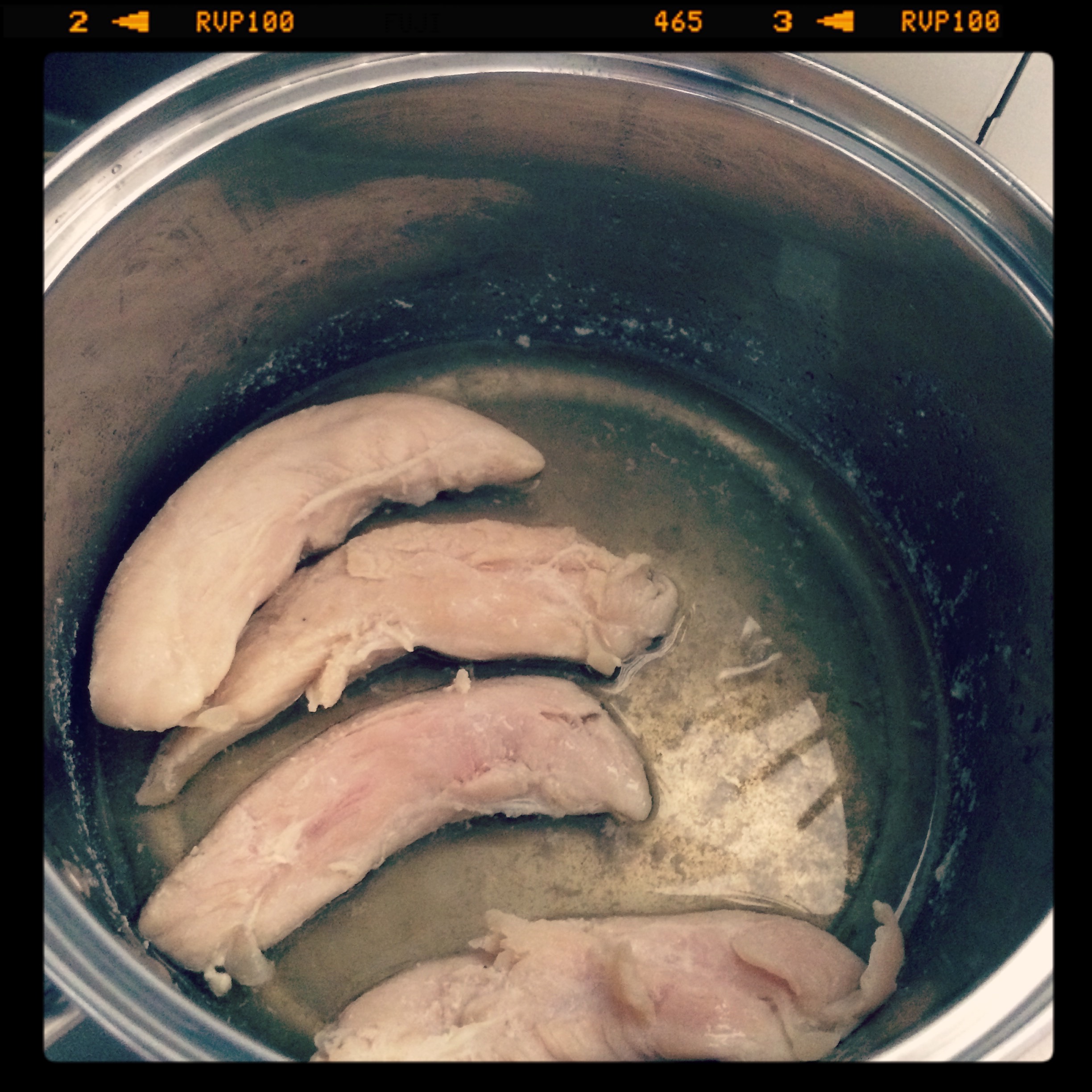 朝のピザトーストの肉は自家製鶏ササミのオイル漬け。